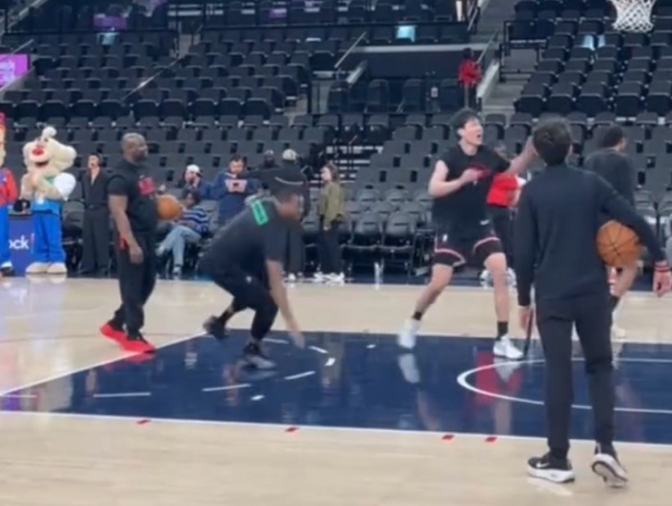 4月1日讯 NBA常规赛,开拓者卡位战客场114-104击败快船。赛前有镜头捕捉到杨瀚森在热身时撞倒了黑人助教。