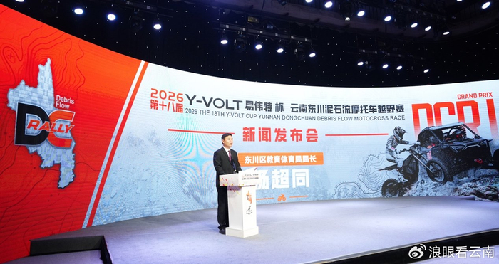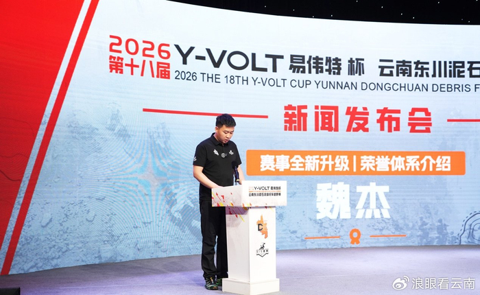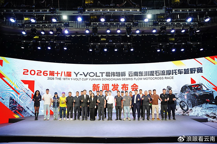 2026年4月8日,2026第十八届“Y-VOLT(易伟特)杯”云南东川泥石流摩托车越野赛新闻发布会在昆明市融媒体中心举行。发布会宣布,本届赛事以“征服永不重复的赛道,加冕永不言败的勇者”为主题,将于4月29日至5月3日在云南东川泥石流赛道激情开赛。